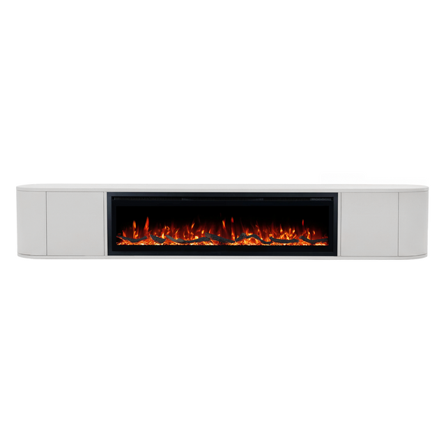 - TV-meubel met haard in het midden, standaard inbegrepen